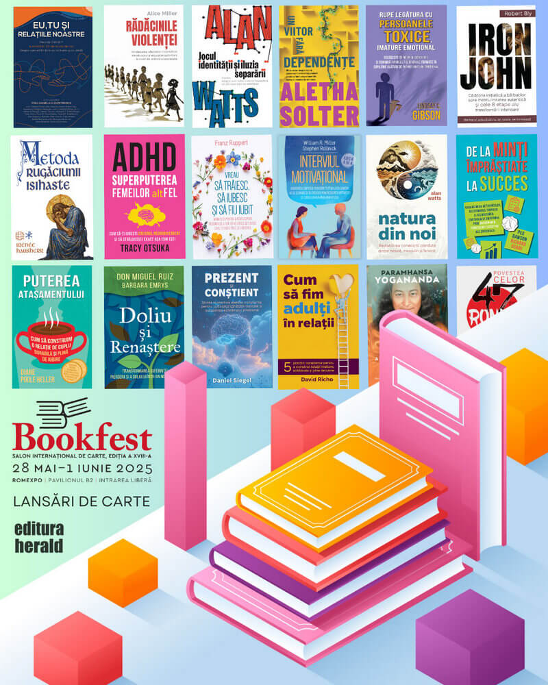 La standul Editurii Herald (A16, Pavilionul B2, Romexpo) veți descoperi cele mai recente apariții editoriale, titluri-eveniment și volume de referință, atent selecționate din domenii precum psihologie, spiritualitate, filosofie, știință, dezvoltare personală.