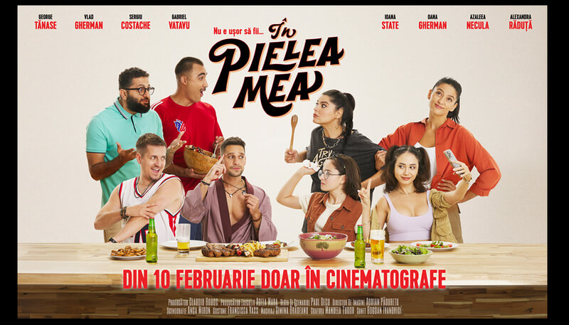 Comedia „În pielea mea” prezintă din 10 februarie în cinematografe patru cupluri amuzante și surprinzătoare: Oana Gherman și Sergiu Costache, Ioana State și Gabriel Vatavu, Azaleea Necula și George Tănase, Vlad Gherman și Alexandra Răduță.