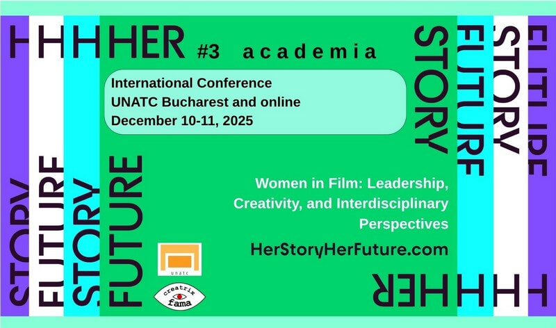 Creatrix Fama, în parteneriat cu Universitatea Națională de Artă Teatrală și Cinematografică „I.L. Caragiale” (UNATC), anunță deschiderea înscrierilor pentru conferința internațională hibridă Women in Film: Leadership, Creativity, and Interdisciplinary Perspectives, care va avea loc în perioada 10–11 decembrie 2025, la București și online, prin Zoom.