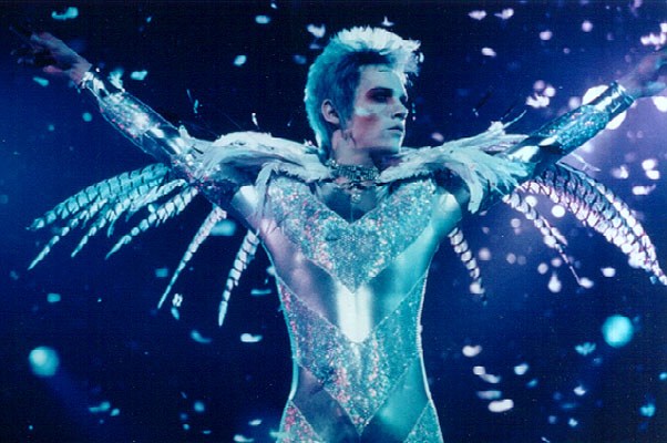 Aleg nu una, ci trei apariții ciudate în cadrul aceluiași film, Velvet Goldmine, un Jonathan Rhys Meyer superstar asexuat, un Christian Bale groupie hipiot și un Ewan McGregor flușturatic nevoie mare 🙂