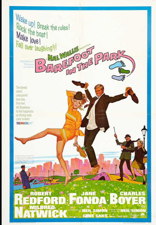 ‘Barefoot in the Park’ scris de Neil Simon și regizat de Gene Sacks a fost probabil primul film adus în România în care l-am văzut pe Robert Redford. El joacă aici rolul lui Paul Bratter, un tânăr avocat conservator căsătorit cu frumoasa și liberala Corie Banks, interpretata de Jane Fonda. Cei doi se iubesc la nebunie, dar relația lor extrem de pasională se transformă în discordie atunci când închiriază primul lor apartament într-o clădire dărăpănată de cinci etaje din New York, populată cu vecini excentrici. Abordarea lejeră și farmecul celor doi actori fac din acest film o bornă în trecerea de la comediile de familie clasice ale Hollywood-ului anilor ’30-’50 spre comediile romantice sexy ale deceniilor următoare. Câteva dintre rolurile secundare sunt de asemenea de remarcat, printre care cel al lui Charles Boyer și al lui Mildred Natwick, care a primit de altfel singura nominalizare la un premiu Oscar de care s-a bucurat acest film.