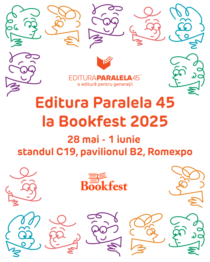 Echipa Editurii Paralela 45 vă așteaptă de miercuri până duminică la standul C19, în pavilionul B2 al Romexpo, cu sute de titluri, numeroase noutăți din toate domeniile editoriale – educațional, literatură pentru copii și adolescenți, ficțiune și nonficțiune – precum și cu reduceri cuprinse între 15% și 30%.