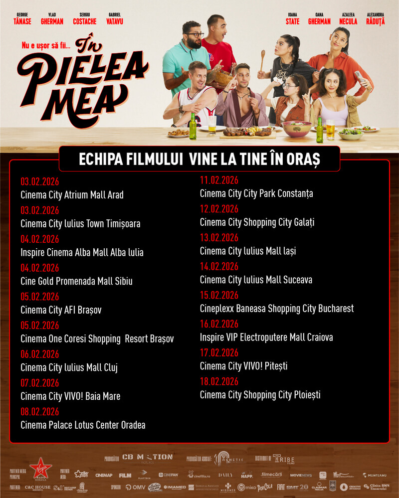 Caravana continuă din 11 februarie, când va avea loc proiecția de Cinema City din City Park Constanța, de la 18:30, unde regizorul Paul Decu și actrița Azaleea Necula, originari din Constanța, vor prezenta filmul alături de colega lor Ioana State.